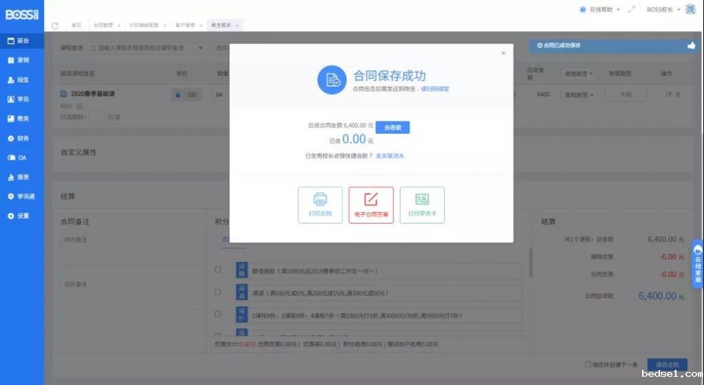 而现在,在伟德足球官网下载安装手机版技术|BOSS系统上录了合同之后只需要点击一下,家长即可签署,系统中合同签署状态即时更新。