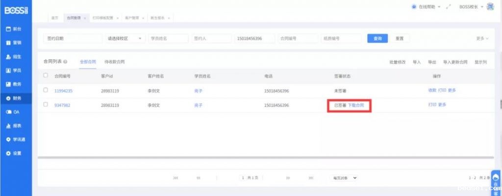 而现在,在伟德足球官网下载安装手机版技术|BOSS系统上录了合同之后只需要点击一下,家长即可签署,系统中合同签署状态即时更新。