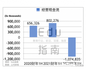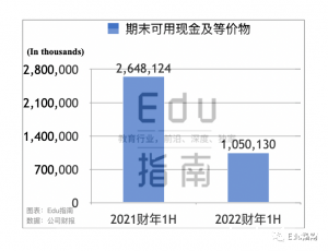 经营现金流的亏损,也直接指向该公司报告期内的可支配现金及等价物大幅下降。截至2022财年上半年,新东方公司的期末可用现金及等价物剩余10.5亿美元,而2021财年同期该数据为26.5亿美元。即本报告期该项数据下降60%。