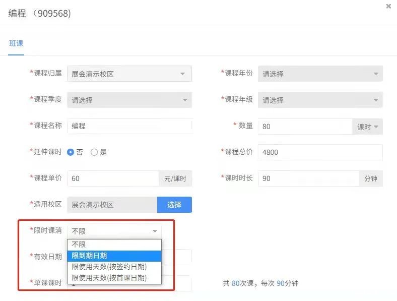 课程有效期设置