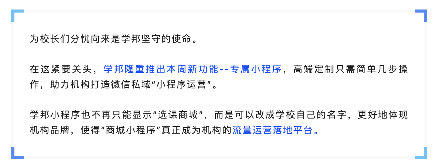 有些校长开始烦恼了,定制开发出配有自主品牌的小程序要耗费很大的功夫吧,关键是咱也不会呀。