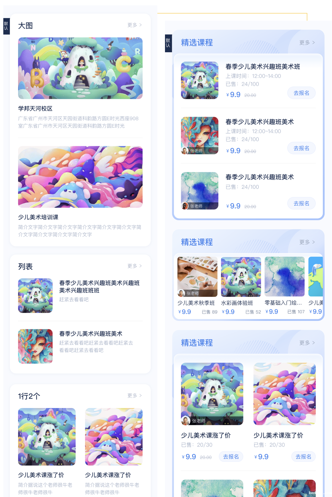 我们是美术机构,用艺术拓宽未来发展之路是我们的宗旨,也因此页面的布局风格我们会选择灵动又不是风尚的。