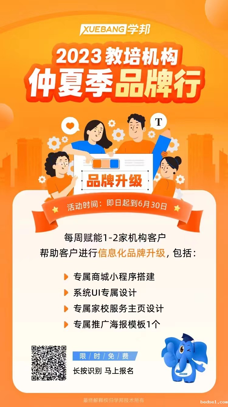 伟德足球官网下载安装手机版2023教培机构仲夏品牌行,每周赋能1-2家机构,名额有限,请在下图长按二维码报名。