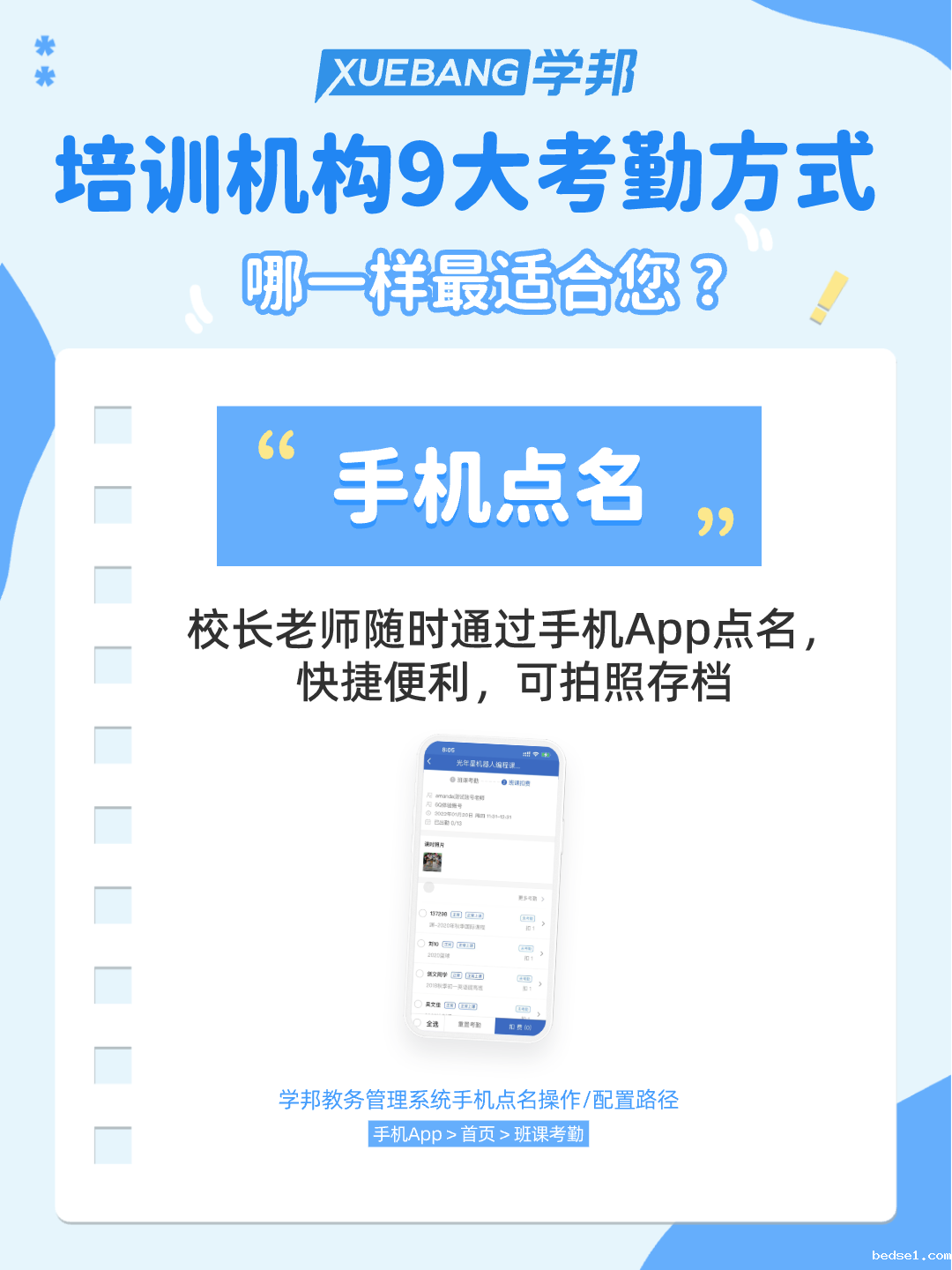 我们为您总结了培训机构九大常见考勤方式,各有特色,总有一款适合你!