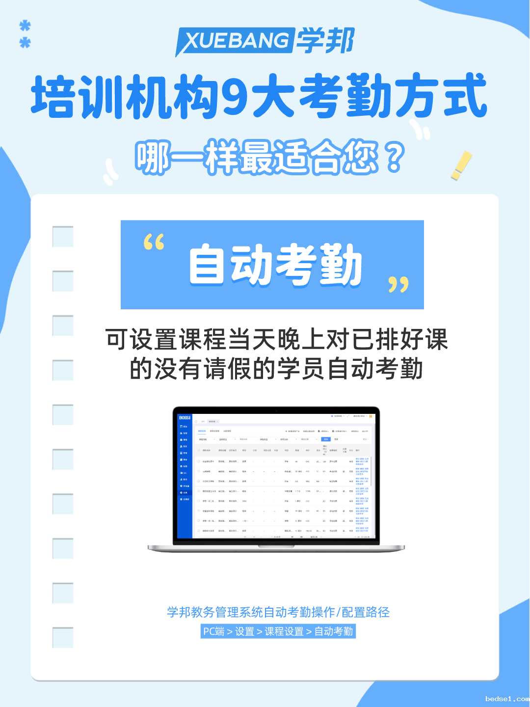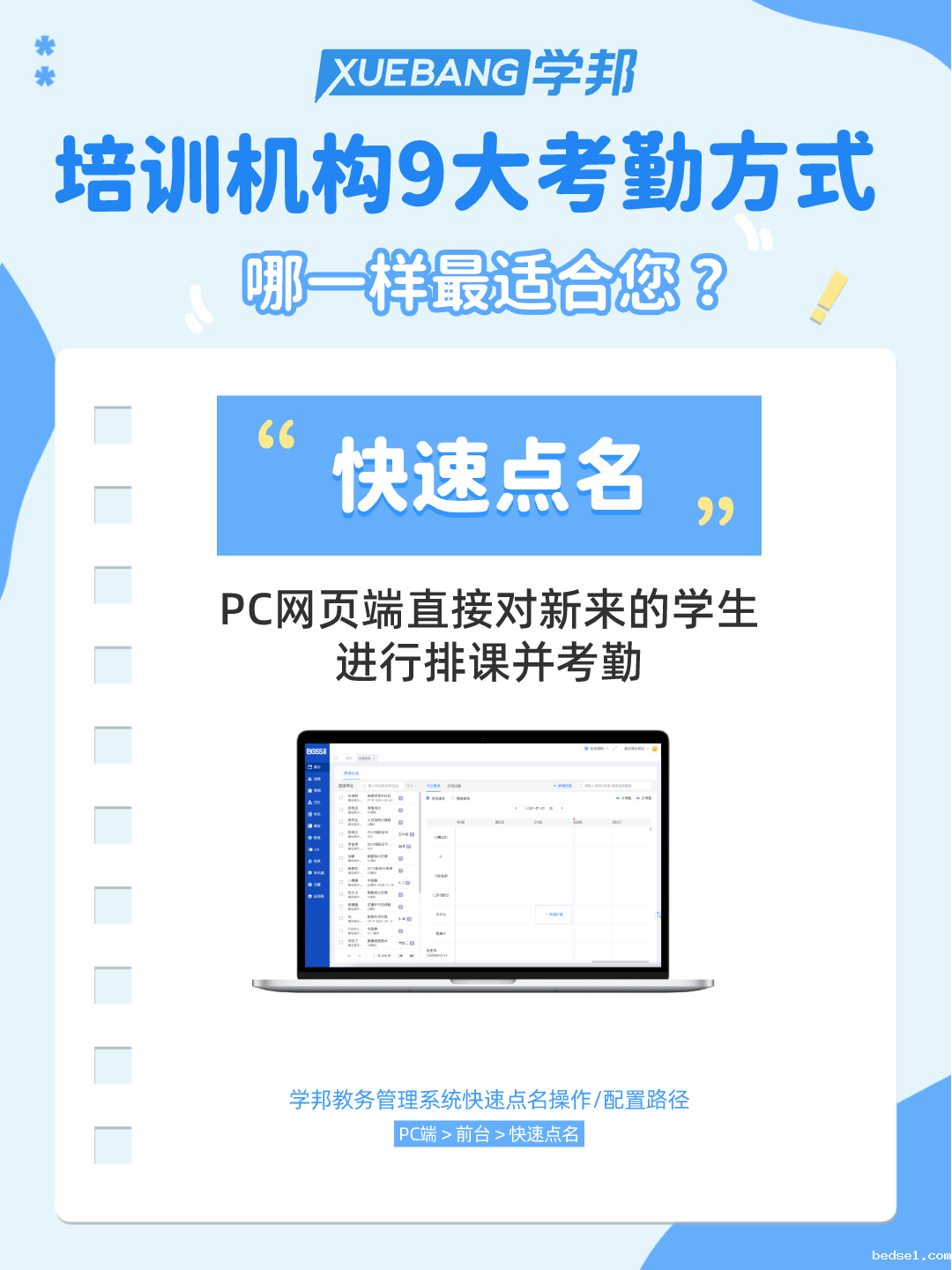 – 适用于出勤率高、上课固定的机构!至于如何提高出勤率,可以观看我们的小红书文章《八大提高培训机构出勤率的方法》
