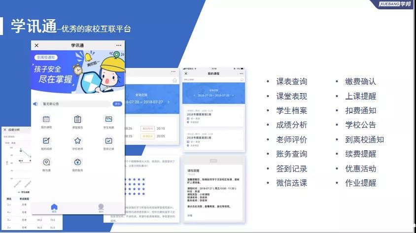 6.学讯通(微信公众号端家校连接 上课提醒 课消更新 到离校通知 打造机构口碑)