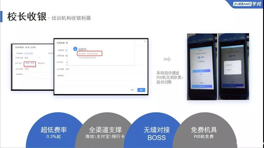 3.校长收银(收款便捷 远程自动 低费率 免费POS机)
