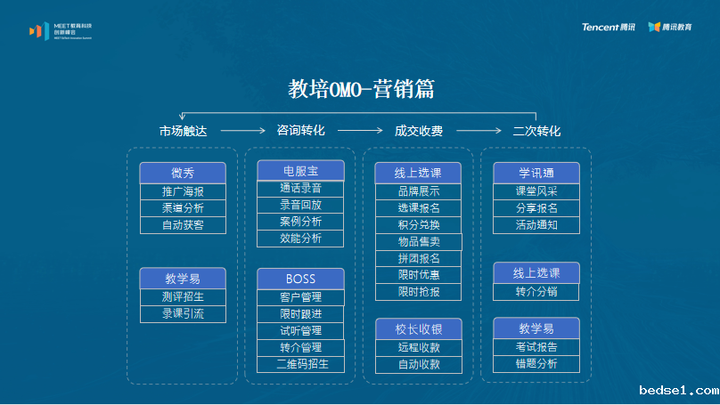 伟德足球官网下载安装手机版技术携BOSS校长和教学易双引擎教培科技产品出席了MEET教育峰会,并联合腾讯教育推出了“腾讯教育·智培OMO平台”,赋能教培机构实现OMO转型。