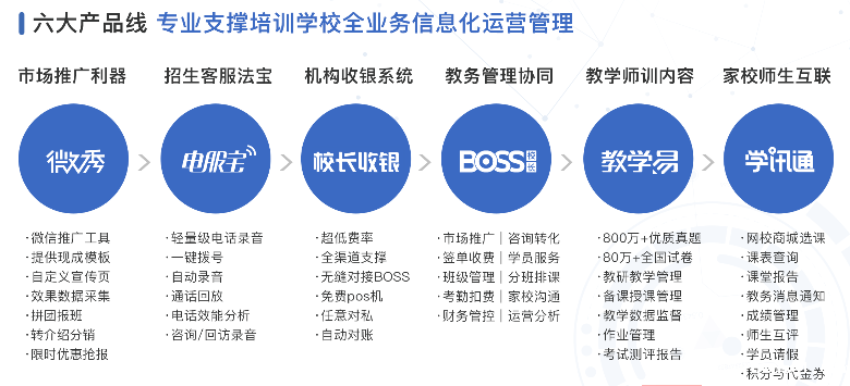伟德足球官网下载安装手机版技术六大产品线–专业支撑培训学校全业务信息化运营管理
