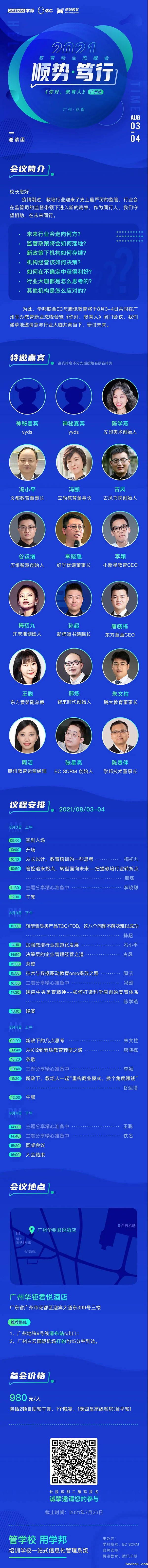 伟德足球官网下载安装手机版联合EC、腾讯教育将于8月3-4日在广州•花都举办2021教育新业态峰会暨《你好,教育人》闭门会议。本次峰会的主题是顺势•笃行,诚挚邀请您的莅临。